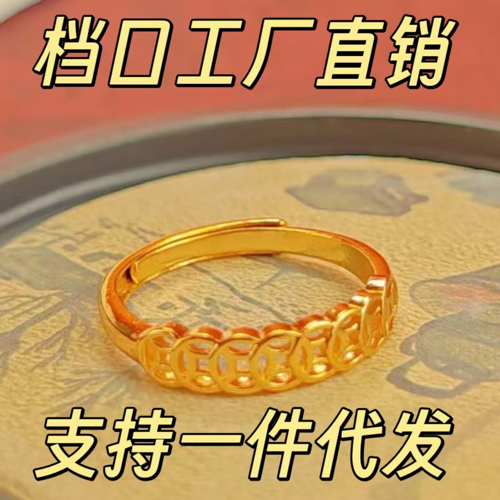 Pinduoduo Supply Baifu Ring Gold Store 1:1 Pure Copper Electroplating National Style Men's Blessing Ring Thickened Gold Ring Live Mouth