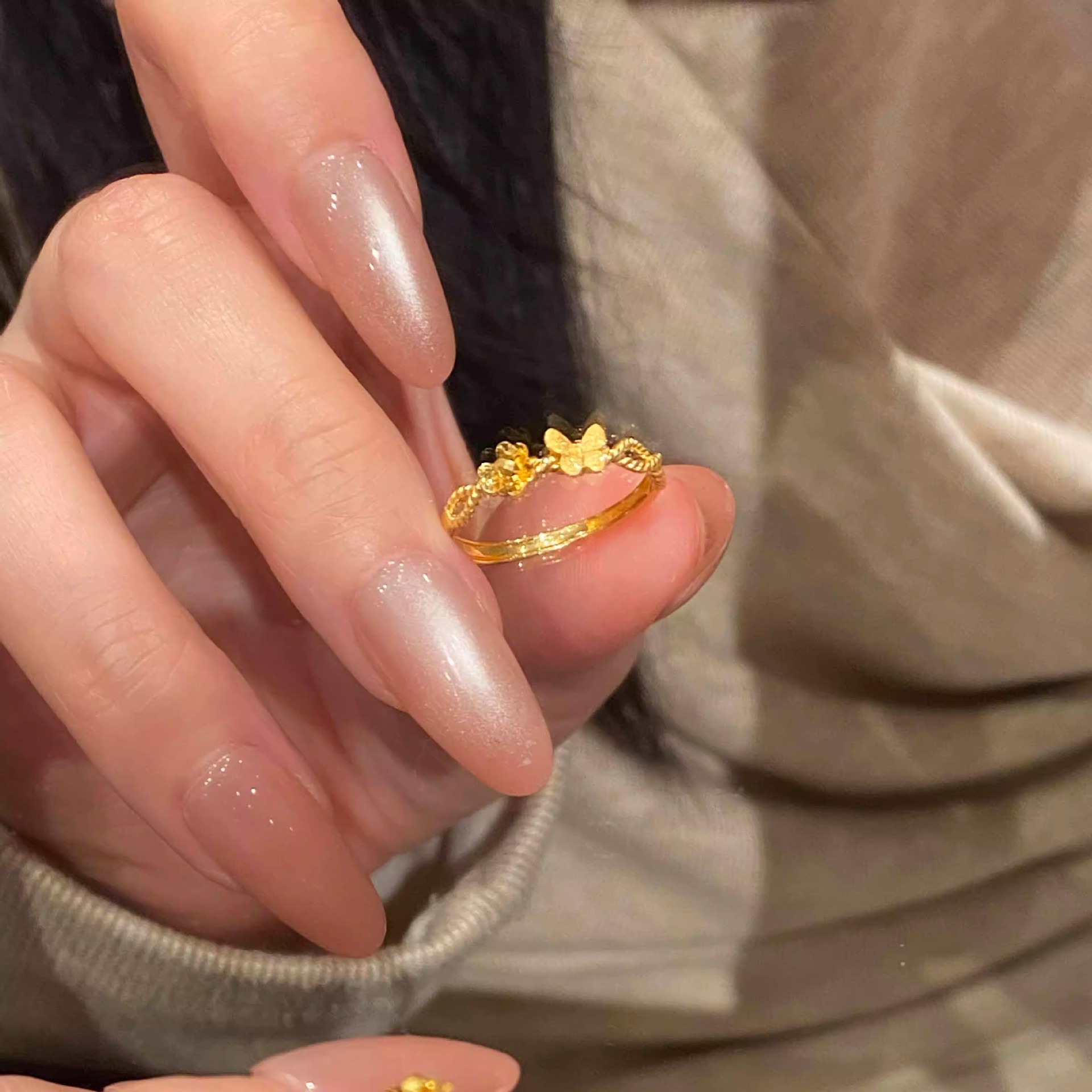 Golden Flower Butterfly Ring for Women 2025 New Chinoiserie Accessible Luxury Elegant Ring Retro Simple High-End Index Finger Ring