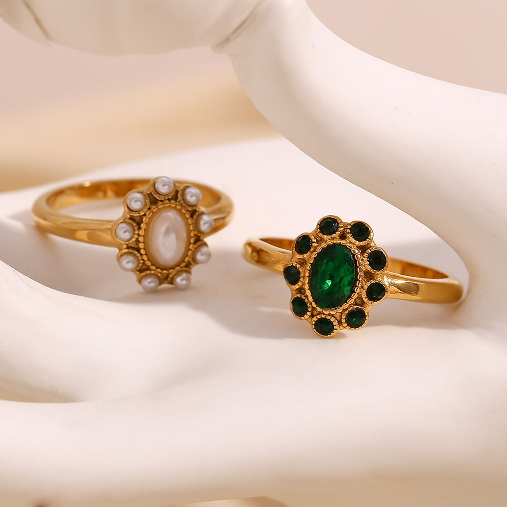 European and American Fashion Niche Light Luxury Elegant Vintage Jewelry Stainless Steel Plated 18K Gold Skirt Full Diamond Luxury Ring for Women