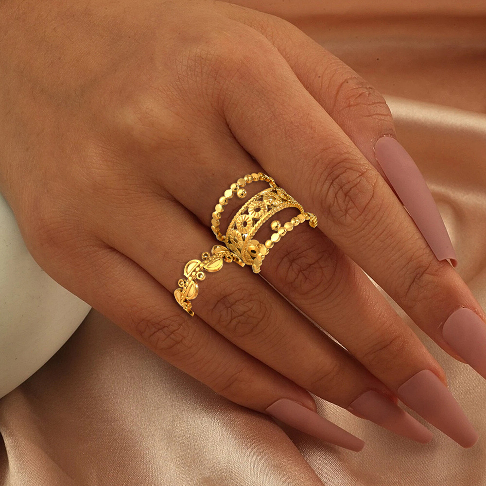 Retro court style hollow carving pattern stainless steel ring women's exaggerated wide face index finger can't quit color wholesale