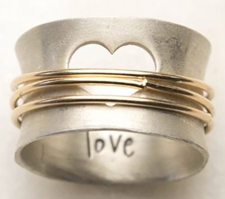 Wish New Jewelry Simple Retro Hollow Heart-Shaped Metal Winding Wide Band Women's Engagement Ring Wedding Ring