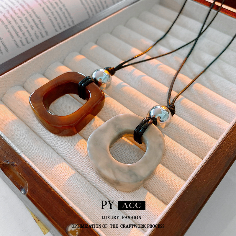 Irregular Hollow Leather Rope Pendant Necklace Fashion Retro Elegant Woolen Chain High Sense Niche Jewelry Wholesale Women