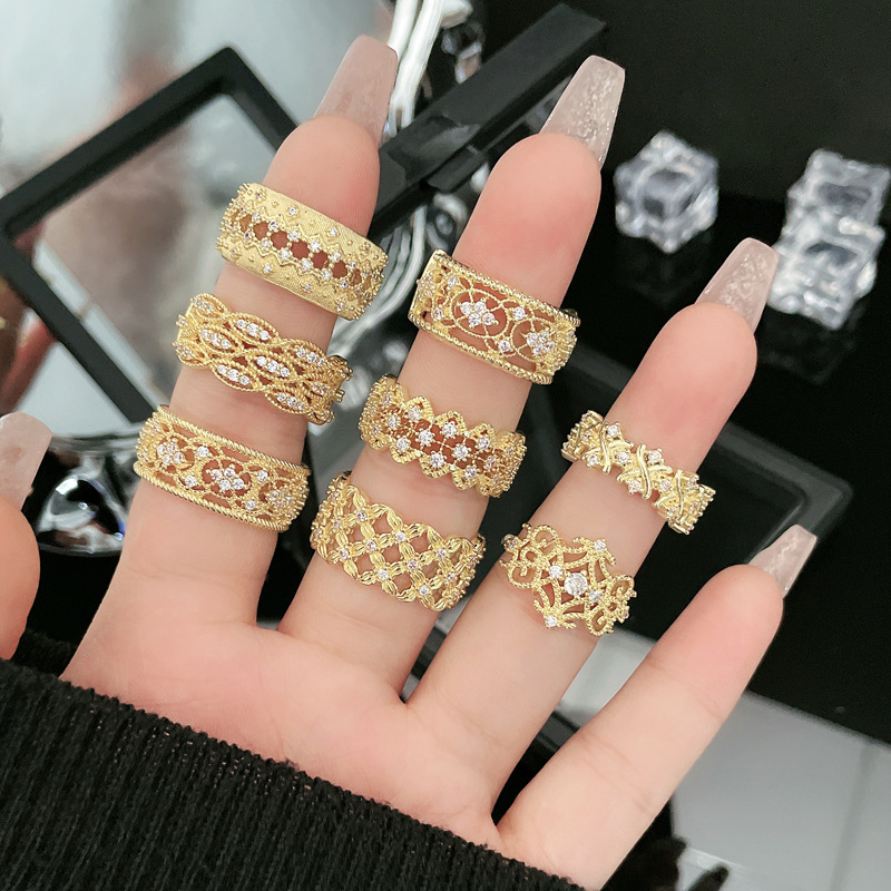 New Chinese Style Retro Lace Hollow High-end Sense Open Ring Female Elegant Palace Ins Niche Design Sense Ring