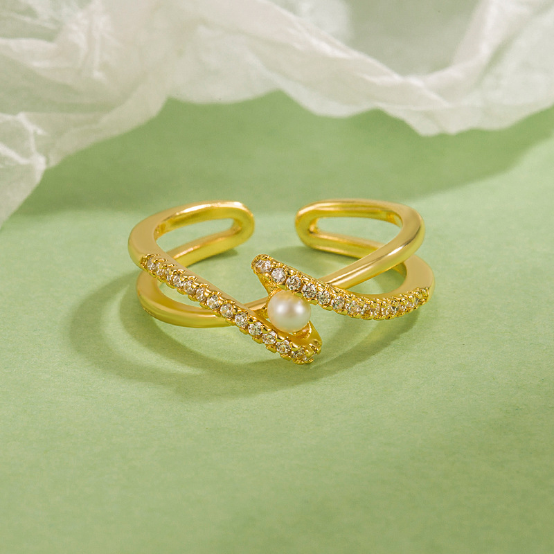 Cross Pearl Ring Unique 2023 Trendy Women's Simple Daily Fashion All-match Personality Retro Diamond Hollow