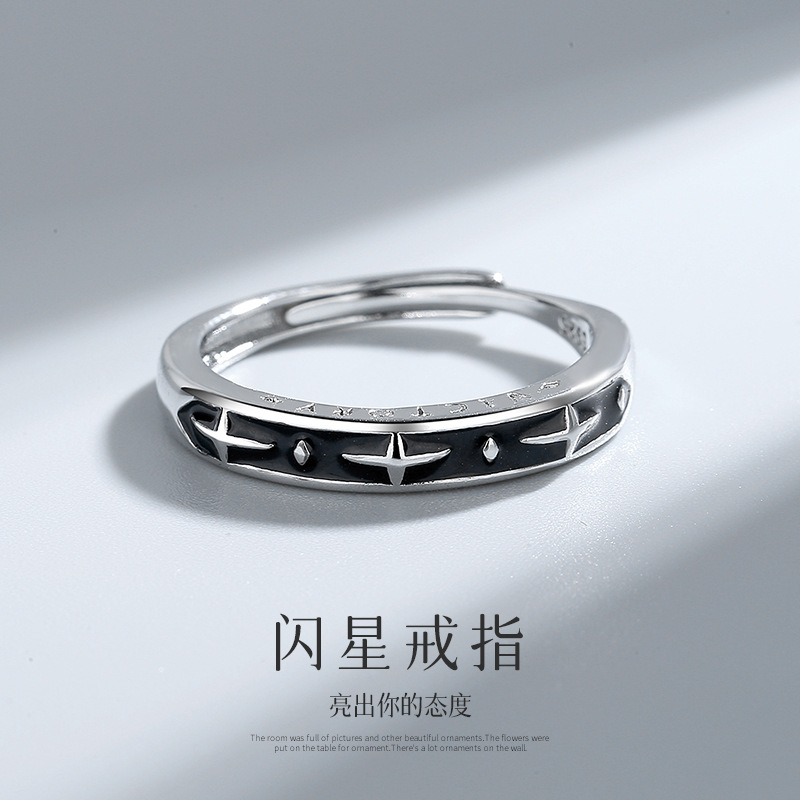 Flash Star Ring Trendy Men's Personalized Hip-Hop Style Index Finger Tail Ring Gel Dropping Star Open Ring Vintage Men's Single Ring