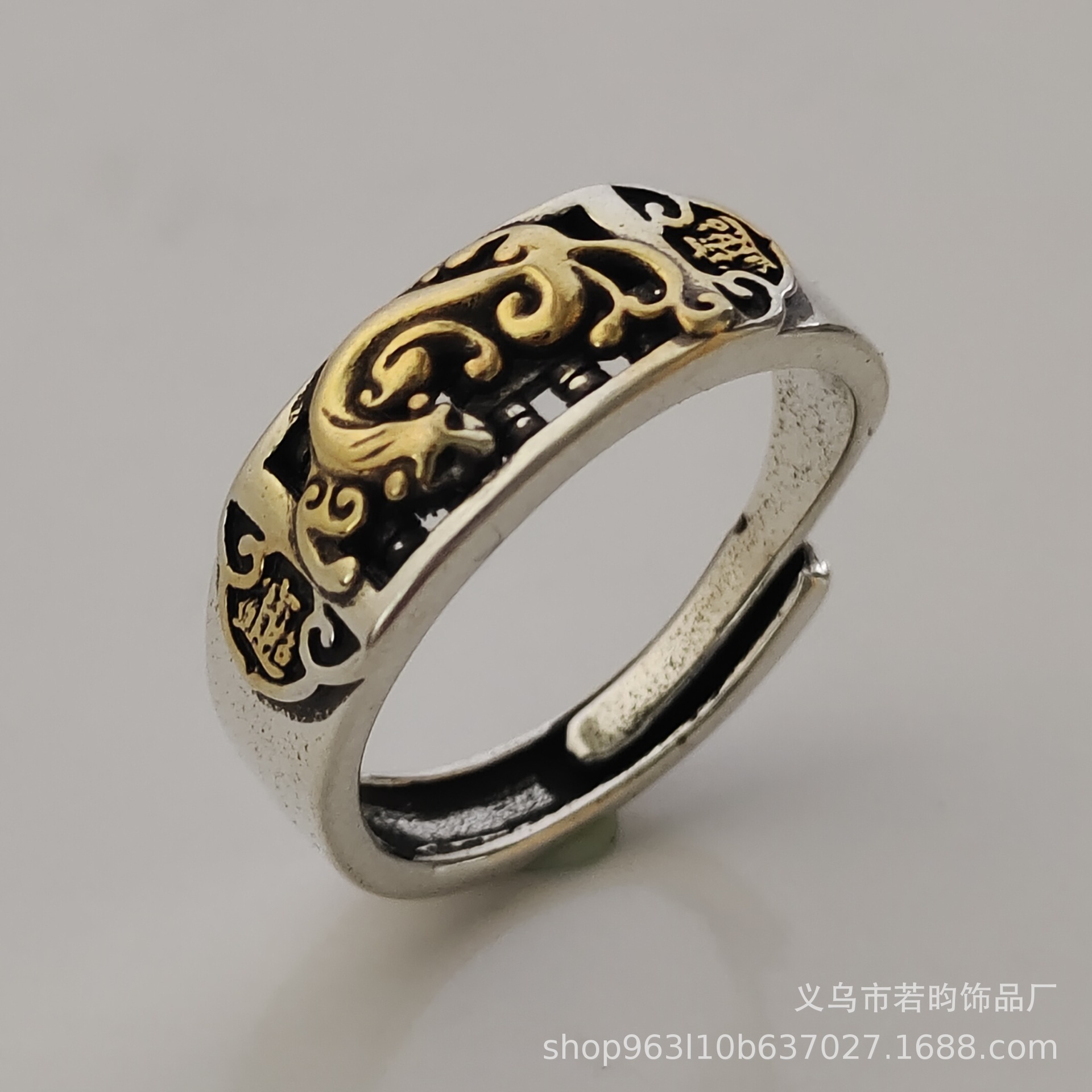 Retro Abacus Pixiu Ring Men's Fashion Domineering Wealth-Attracting Index Finger Ring Imitation Thai Silver Open Ring Wholesale