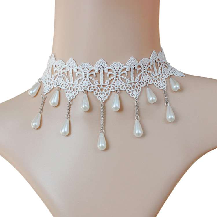 Bridal fashion accessories white lace water drop Pearl female clavicle chain fake collar necklace jewelry wholesale GY080