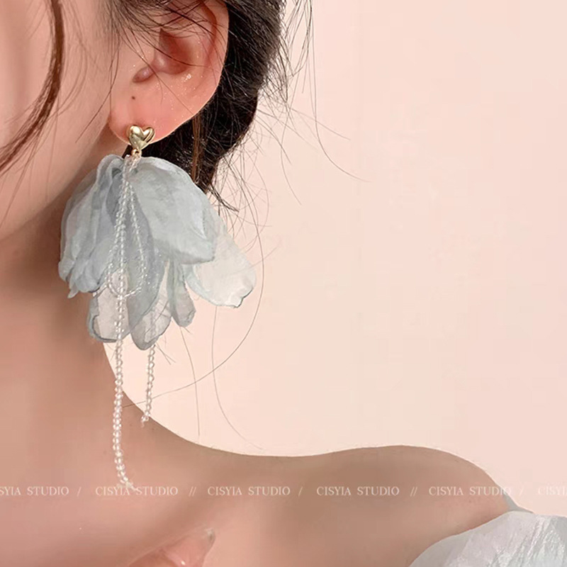 Silver Needle Resin Flower Tassel Earrings 2025 Spring and Summer Forest Style Butterfly Small Fresh Earrings Seaside Vacation Style Earrings