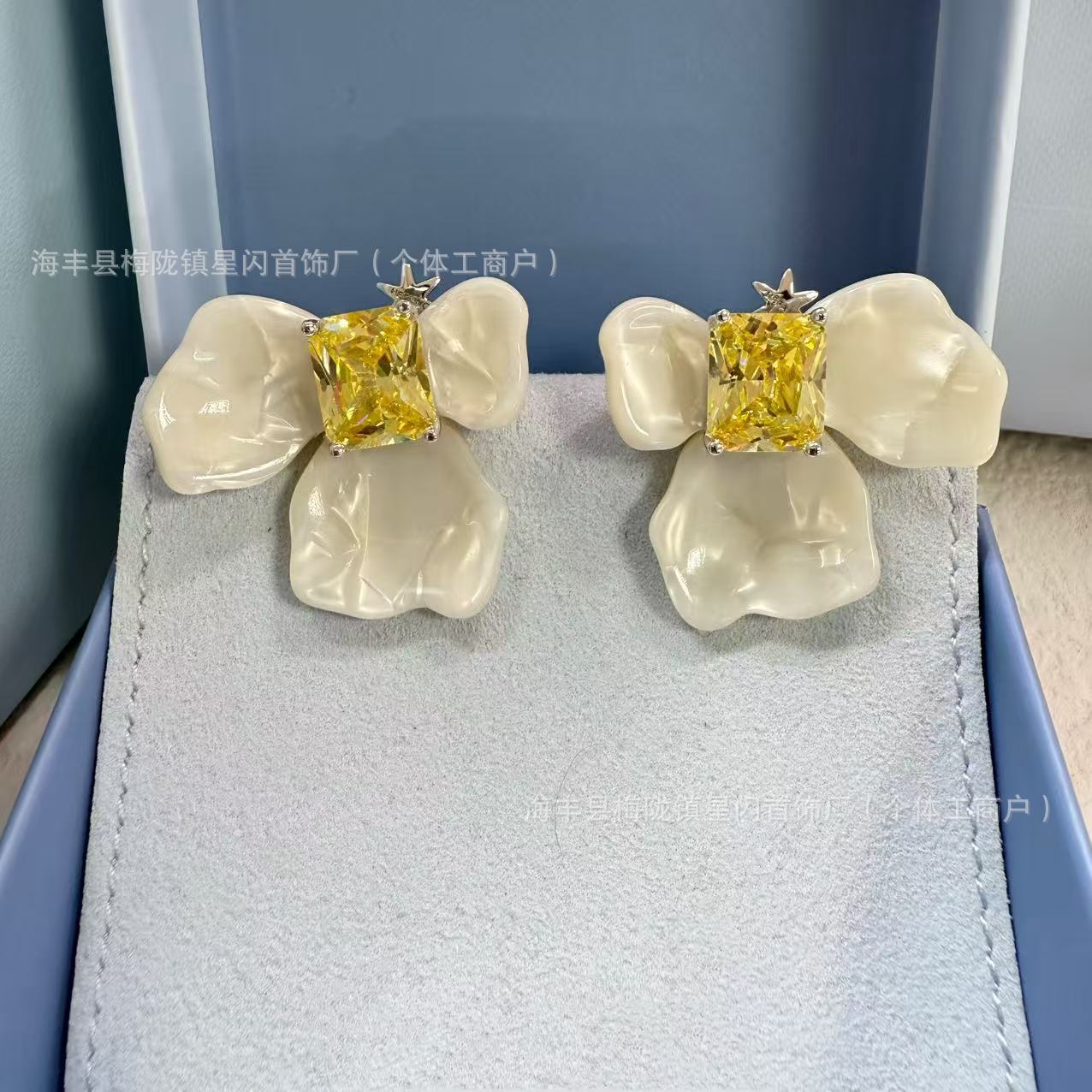 Where white iris cube sugar earrings detachable DIY simple personalized ear clip earrings