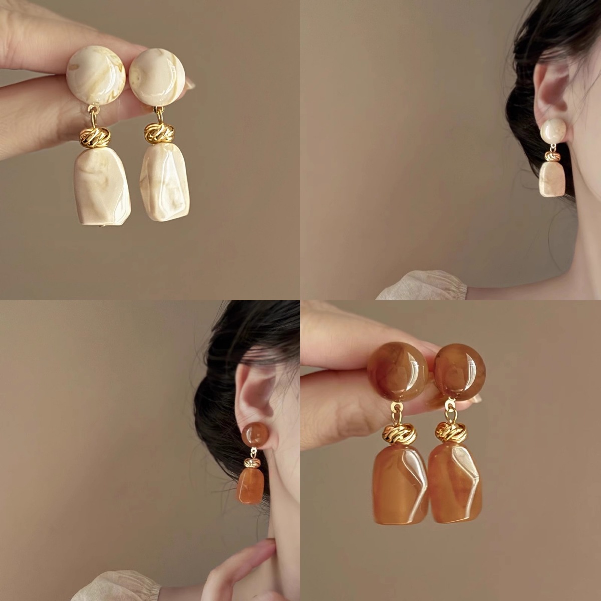 Maillard Advanced Sense Silver Needle Geometry Irregular Resin Love Earrings Elegant Light Luxury Ear Studs Fashion Earrings for Women