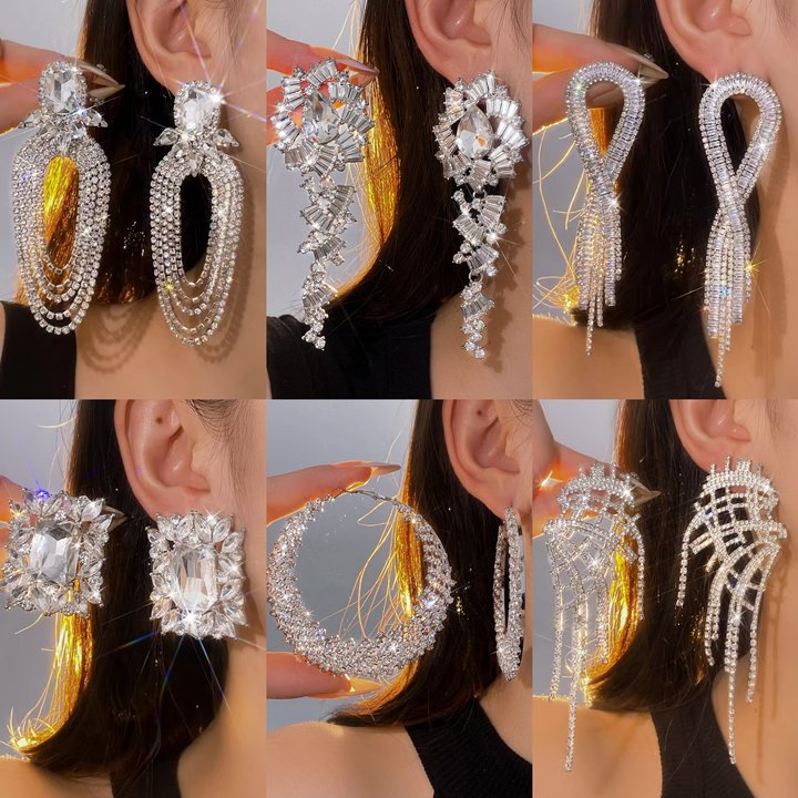 French-Style Elegant Full Diamond Flower Tassel Earrings, Light Luxury High-End Stud Earrings, Fashionable Temperament Earrings with a Unique Design