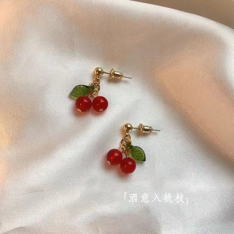 Spring Wild Cherry Ins Retro Girl Red White Sweet Simple Mori High-grade Exquisite Earrings for Women