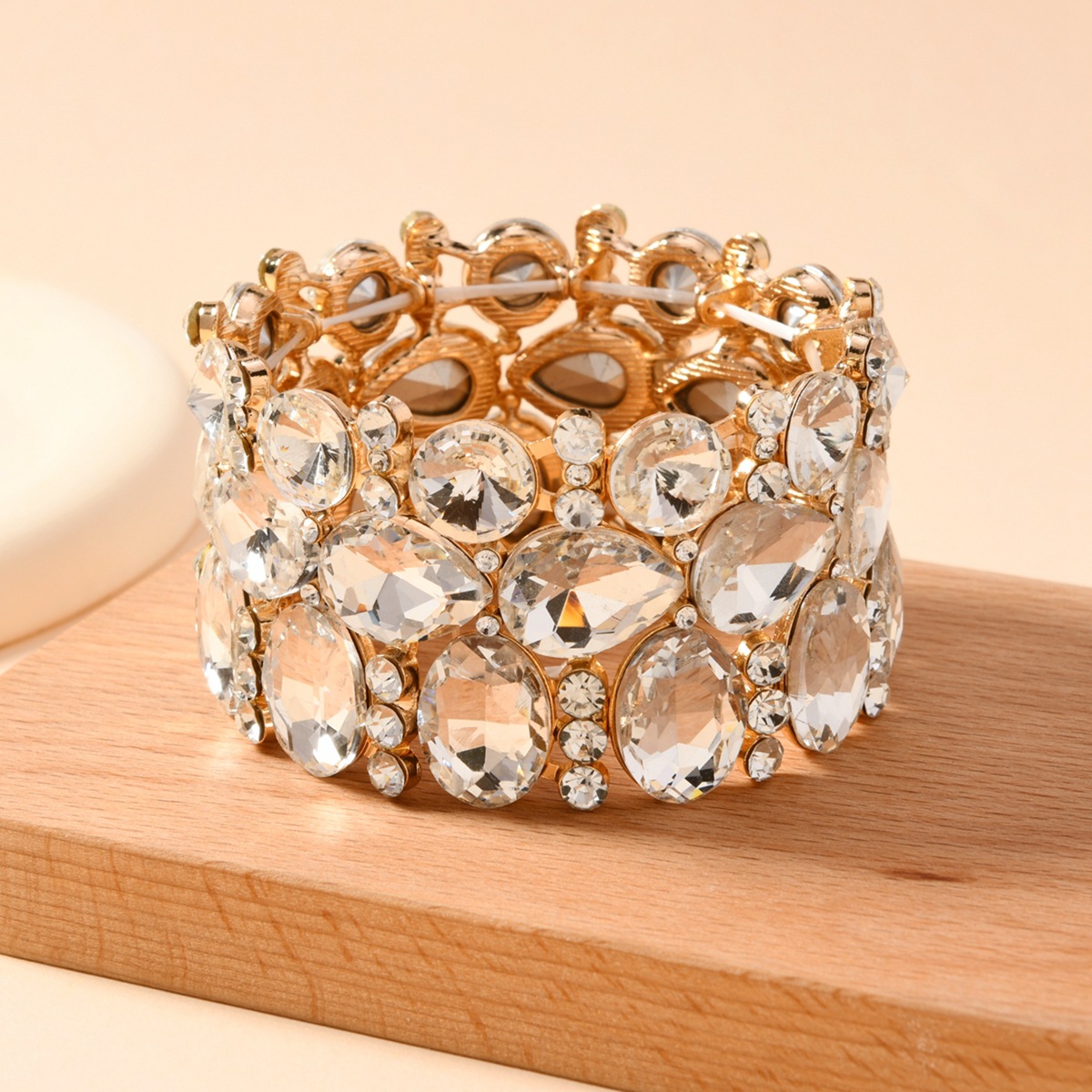 Cross-border Hot Luxury Bracelet European and American Fashion Gorgeous Crystal Stretch Wide Bracelet Women's Party Accessories