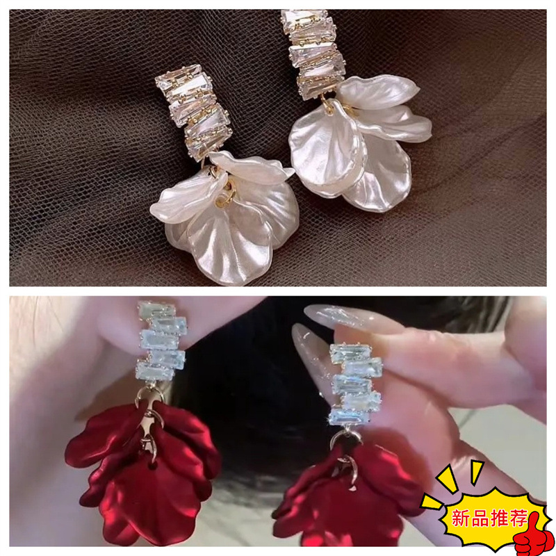 2024 New Autumn and Winter Chinese Style New Rose Elegant High-grade Earrings Vintage Red Petal Earrings for Women