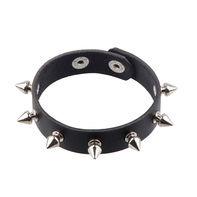 [56] AliExpress no LOGO jewelry supply litchi pattern single ring smooth button alloy PU bracelet