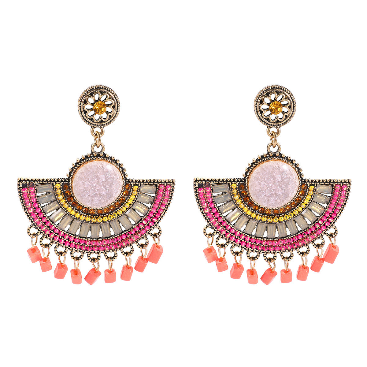 European and American Cross-Border Supply Personalized Bohemian Ethnic Style Earrings Fan-Shaped Tassel Earrings Fashionable Women's Earrings Wholesale