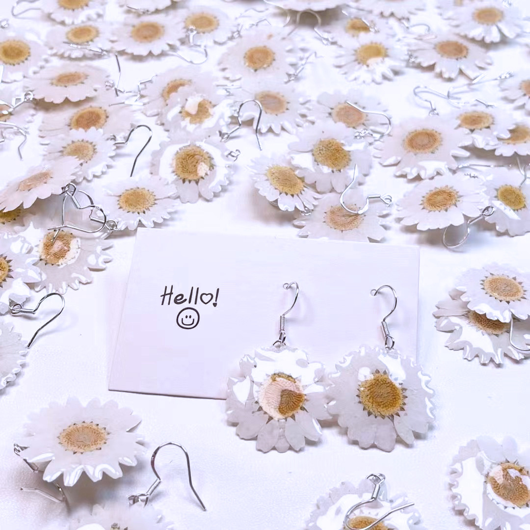 【Real Flower Jewelry】Daisy Earrings New Style Original Creative Fresh Real Flowers Dried Flowers