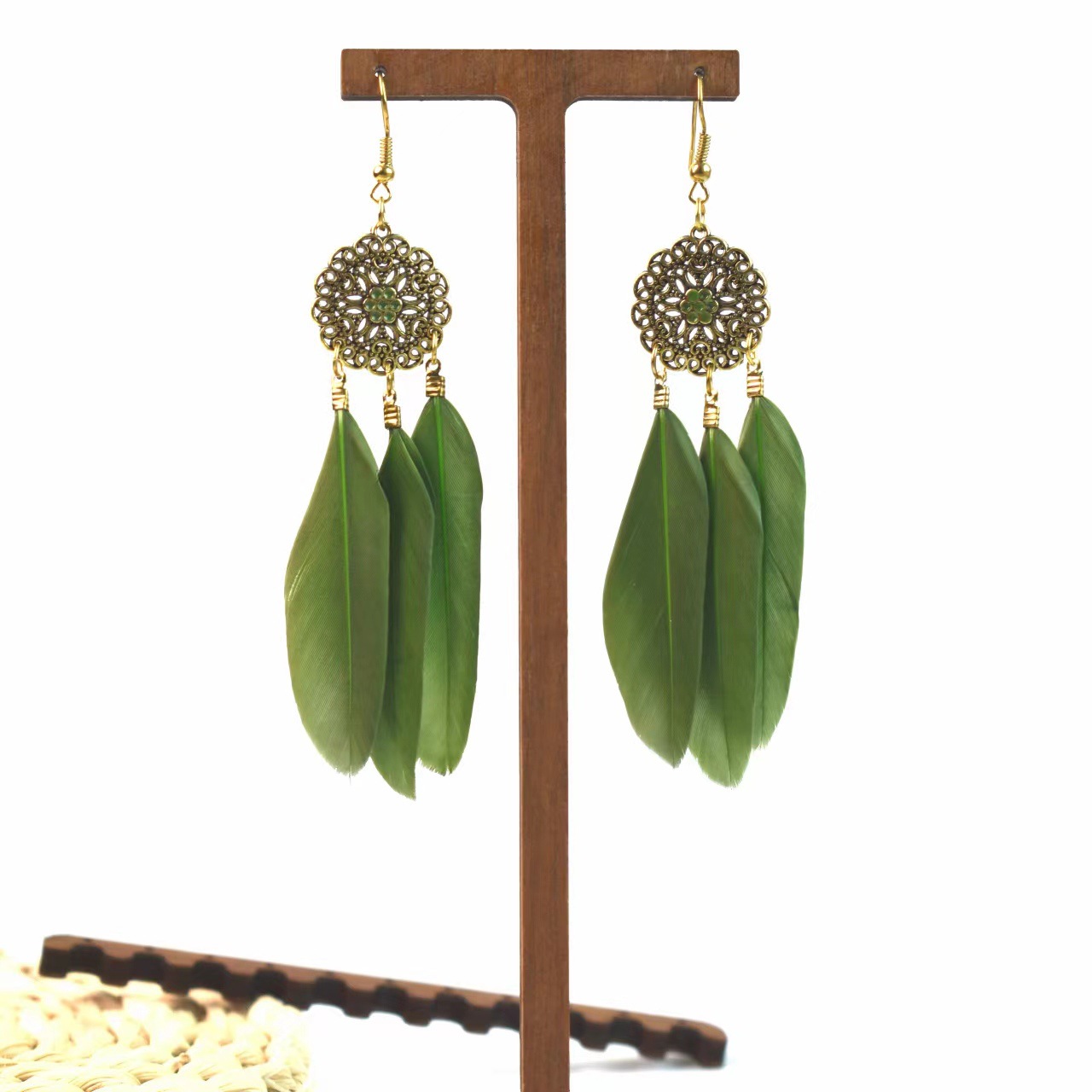Dropping Glaze Famous Ethnic Style Feather Earrings Long Hollow Bohemian Wine Red Earrings Multi-color Accessories for Tourism and Vacation