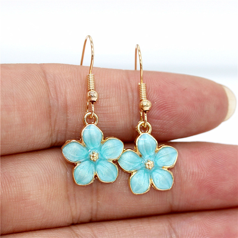 New Sweet Dropping Glue Flower Earrings Girl's Heart Pink Cherry Blossom Earrings Gentle Loving Style Diy Plum Blossom Earrings