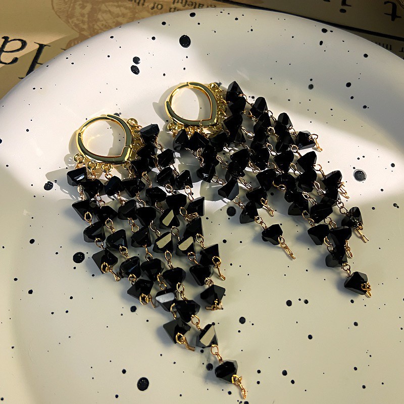 European and American Black Crystal Tassel Geometric Earrings Personalized Design Fashionable Earrings Earrings Elegant Accessible Luxury Large Earrings
