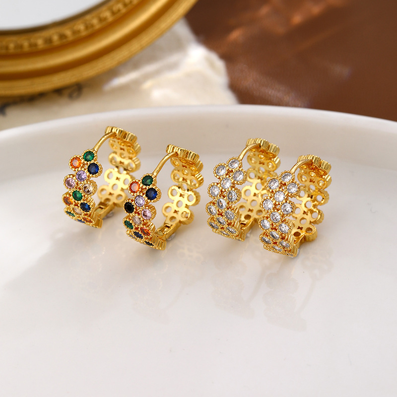 Color Zircon Plum Blossom Circle Ear Buckle French High-end Retro All-match Earrings Elegant Personalized Ear Jewelry Women