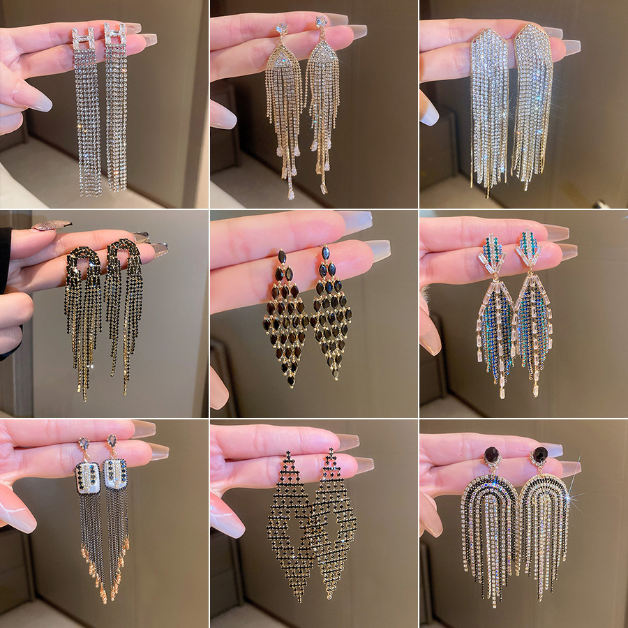Bohemian temperament long rhinestone earrings 2024 new tide net red exaggerated earrings Joker earrings wholesale