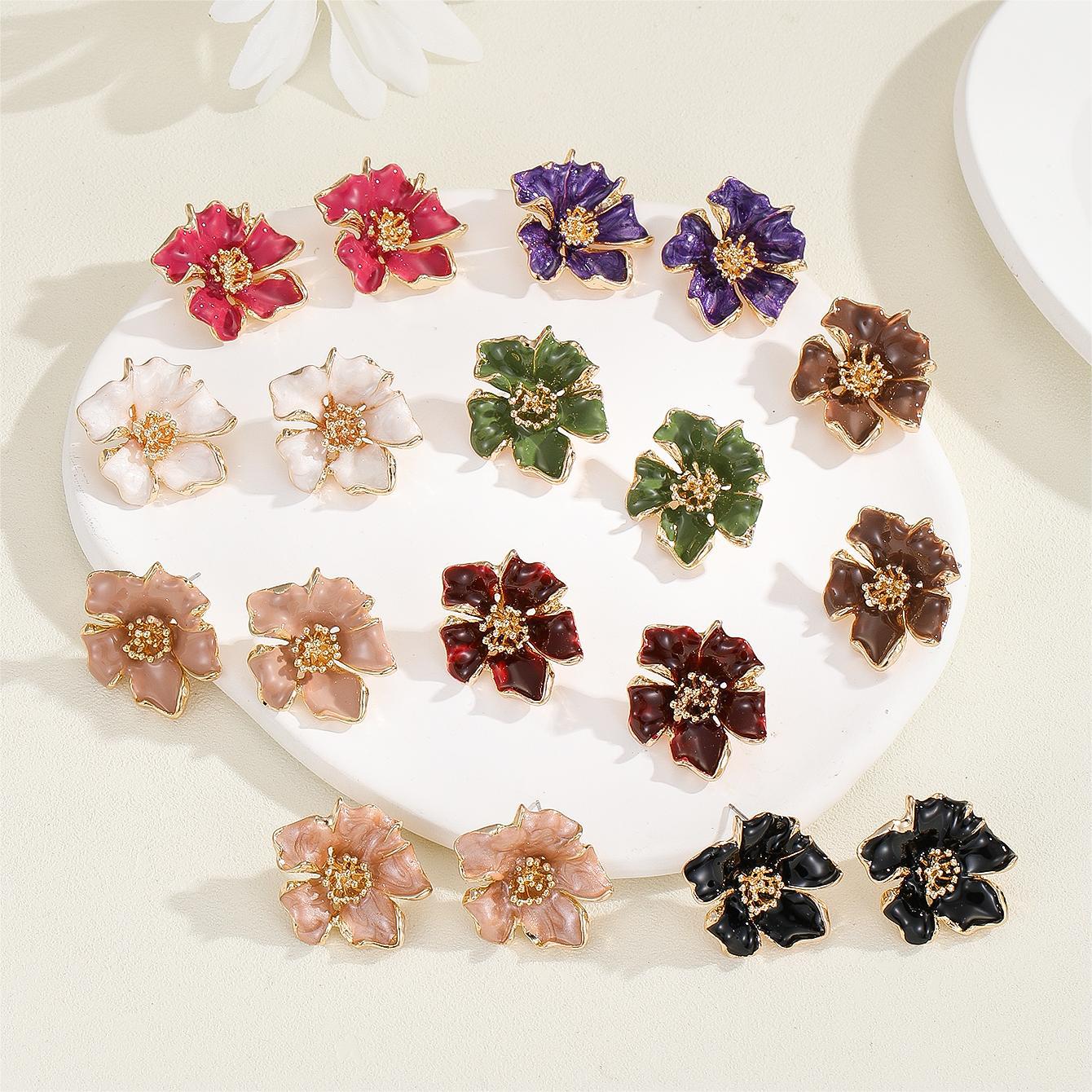 Korean fashion drop oil pleated flower earrings women's atmospheric high-level temperament simple s925 earrings earrings wholesale