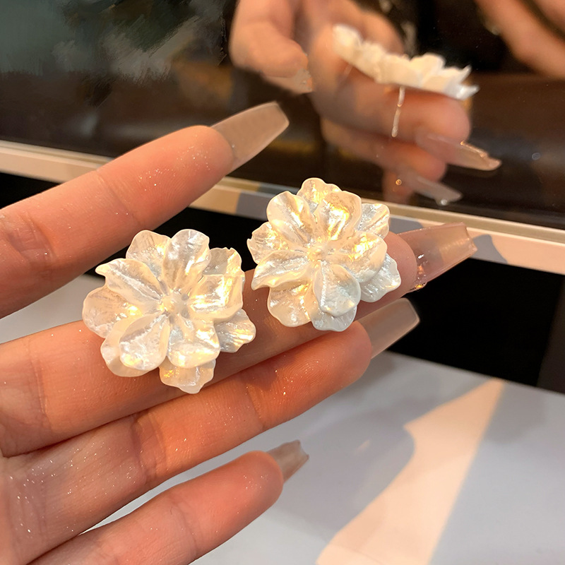 Retro French style white camellia flower earrings for women autumn and winter 2023 new fashion earrings niche temperament ear jewelry