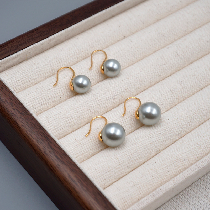 High Heels Small Light Bulb Pearl Earrings Cream White Hemp Gray Round Elegant Ear Hook Earrings