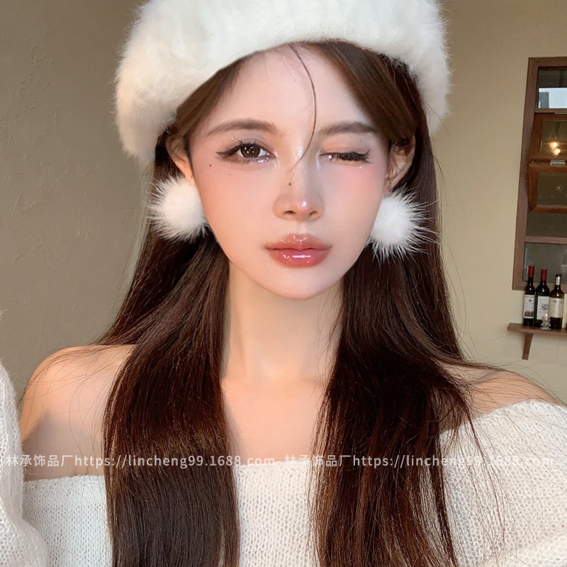 Winter Mink Plush Ball Ball Earrings Women's 2025 New Niche Design Gentle Ear Studs Advanced Ear Buckle Earrings
