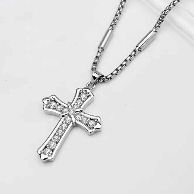 Diamond Cross Necklace Men's White Zircon Color-free High-end All-match Jewelry Women's Trendy Cross-border Explosive Accessories