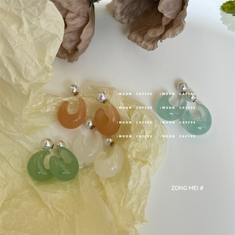 South Korea Bright Color Resin Pearl Ear Ring Women's French Cool Style Personality Design S925 Silver Pin Earrings Ear Jewelry