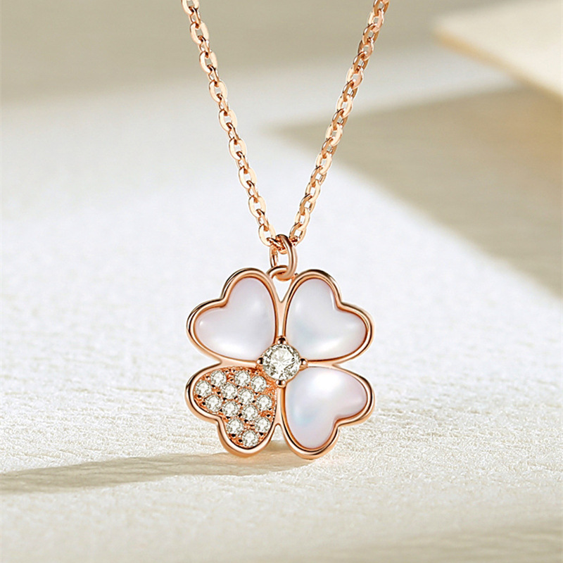 Fashionable Work Clothing High-End Cross-Border Accessories Lucky Four-Leaf Clover Diamond Pendant White Mother-Of-Pearl S925 Sterling Silver Necklace for Women
