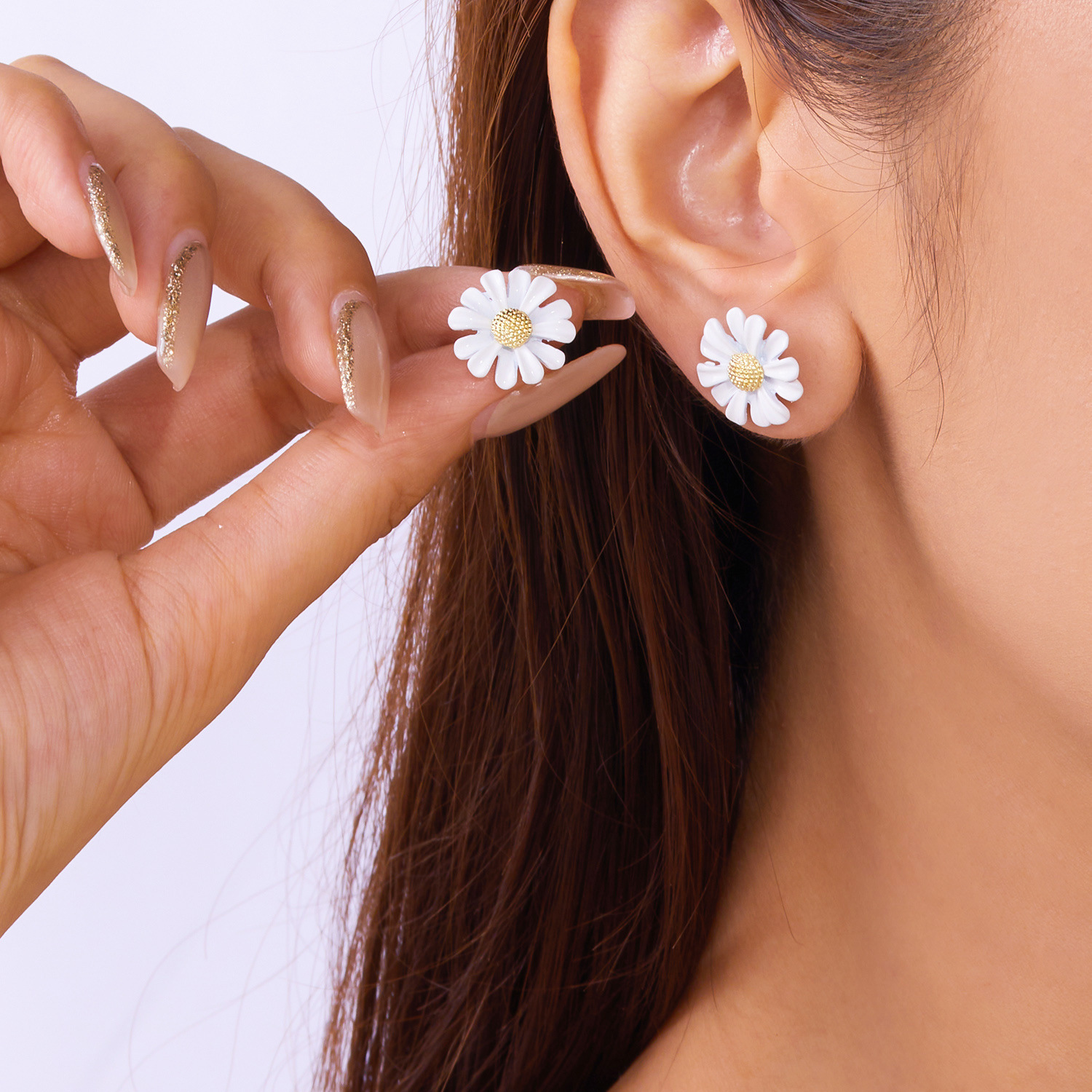 Cross-border Japanese and Korean fashion new daisy series suit all-match small fresh long daisy paint earrings earrings