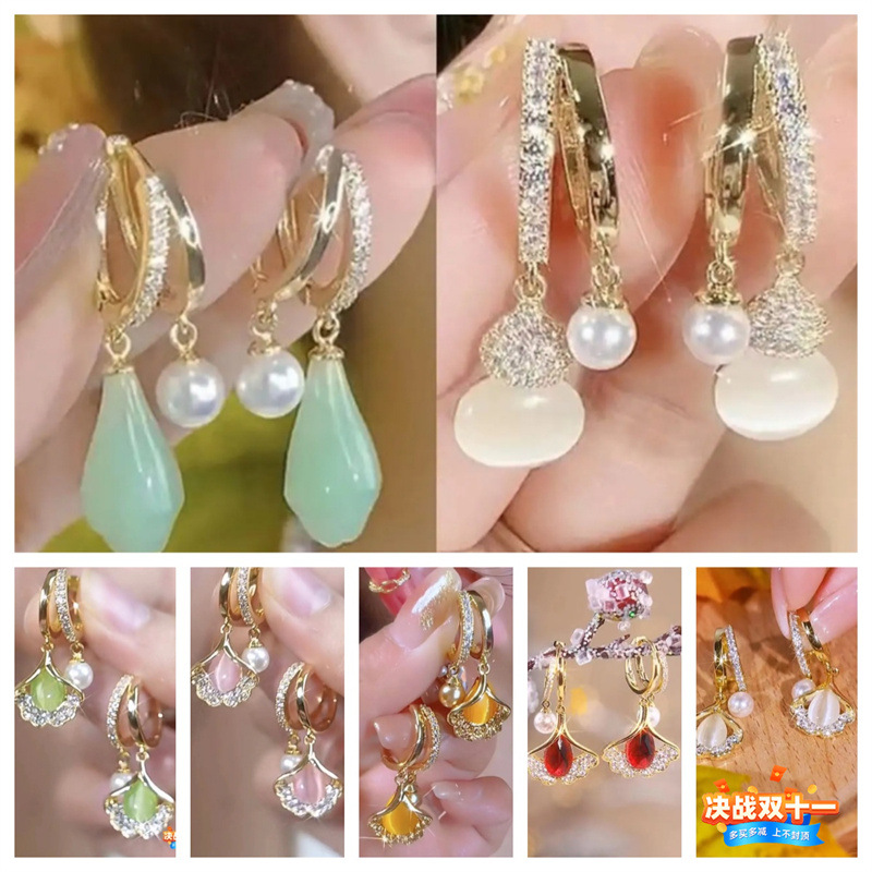 2024 Sansheng Has Apricot French Pearl Earrings, Fashionable and Versatile, Ginkgo Leaf Earrings, Accessible Luxury High-End Earrings