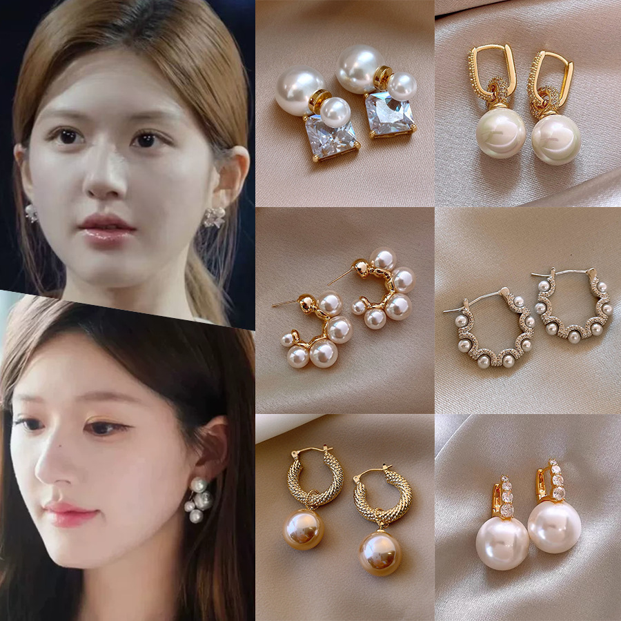 Let Me Dazzle Zhao Lusi and Xu Yan with the Same Style of Pearl Earrings, Accessible Luxury and High-End Earrings, Retro Palace Style Earrings for Women