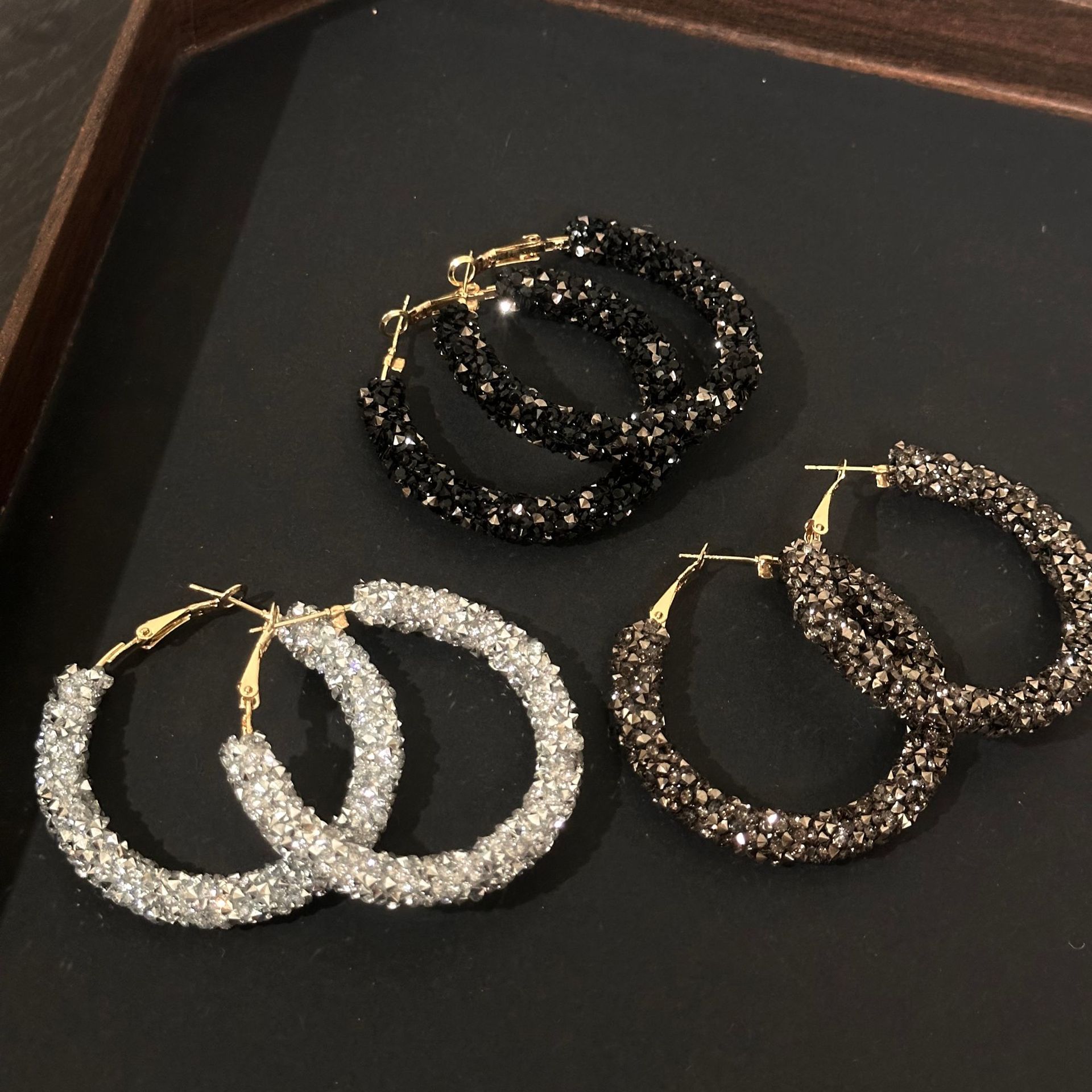 Black Micro-inlaid Full Diamond Big Ear Ring New 2024 Explosions Light Luxury European and American Style Earrings Internet Celebrity Elegant Earrings