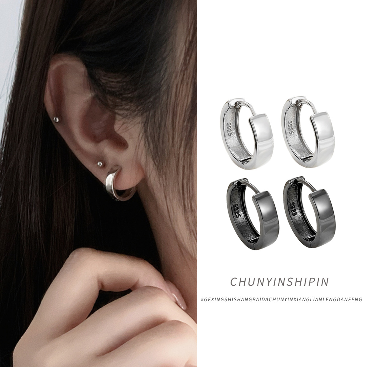 A frigid style jewelry s925 sterling silver glossy earrings temperament black earring high sense ear buckle simple ear clip