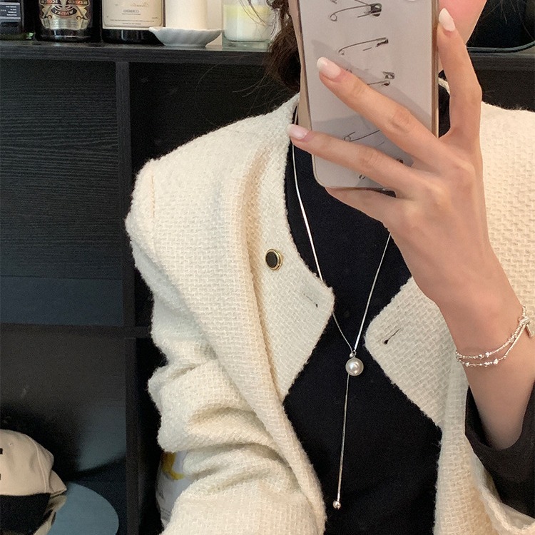 Shi Jia Pearl Pull Adjustable Long Snake Bone Light Luxury Woolen Chain Simple Autumn and Winter Niche Necklace Elegant High-end