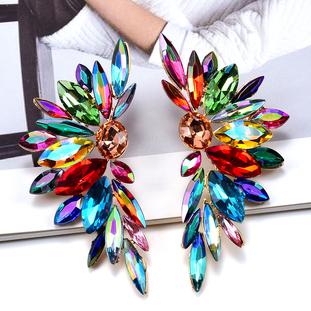 Exaggerated Style Long Drop-Shaped Glass Pendant Chain Long Fashion European and American Cross-Border Niche Tassel Earrings