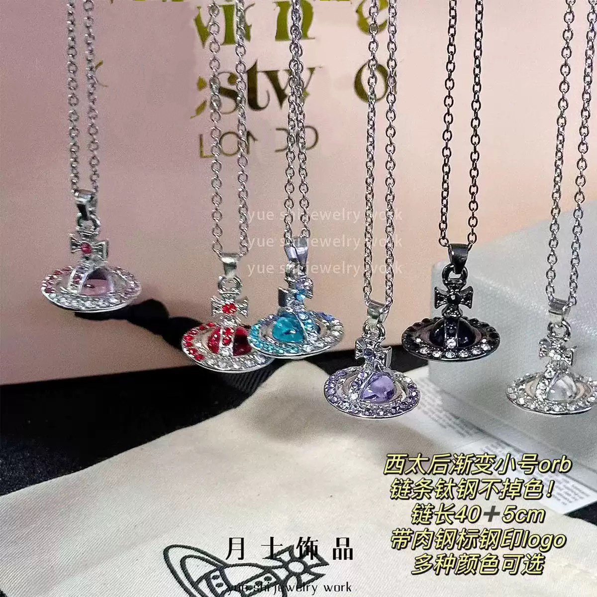 High-End Ultra-Shiny Saturn Gradient Full Diamond Three-Dimensional Orb Medium-Sized Necklace Light Luxury High-End Earrings Wholesale
