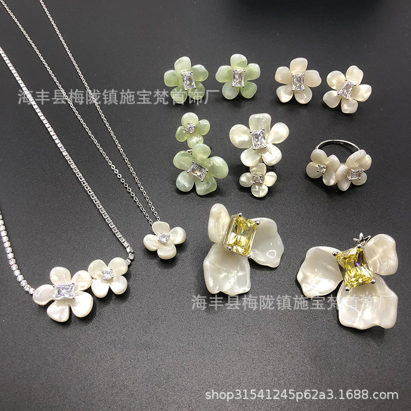 [New Product] Hefang He Fang Jewelry White Iris Sugar Cube Earrings Freesia Flower Cluster Earrings Necklace Clavicle Chain for Women