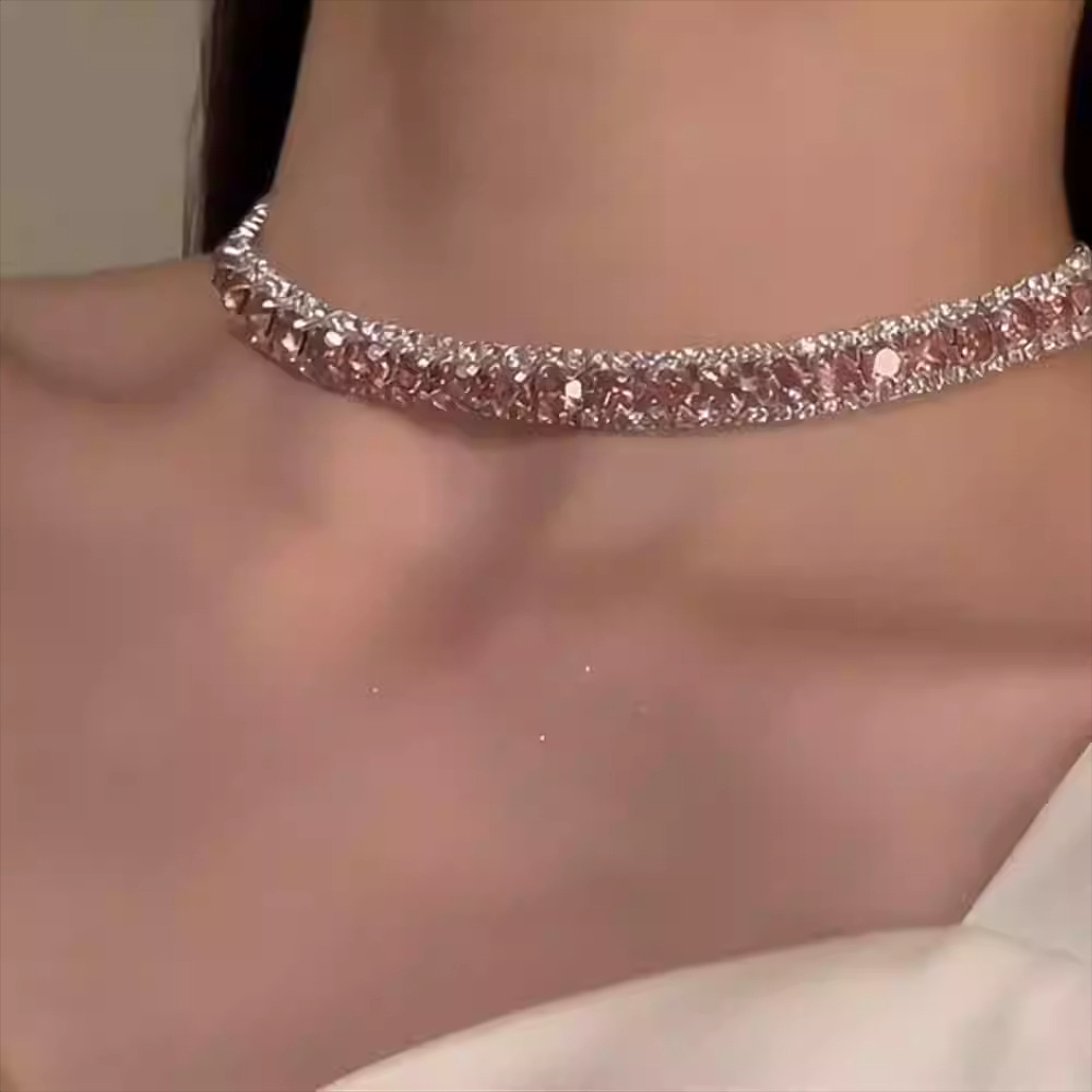 Super Flash Light Luxury Style Diamond Square Clavicle Necklace Fashionable Stylish Simple Niche Elegant High-End Necklace Set for Women