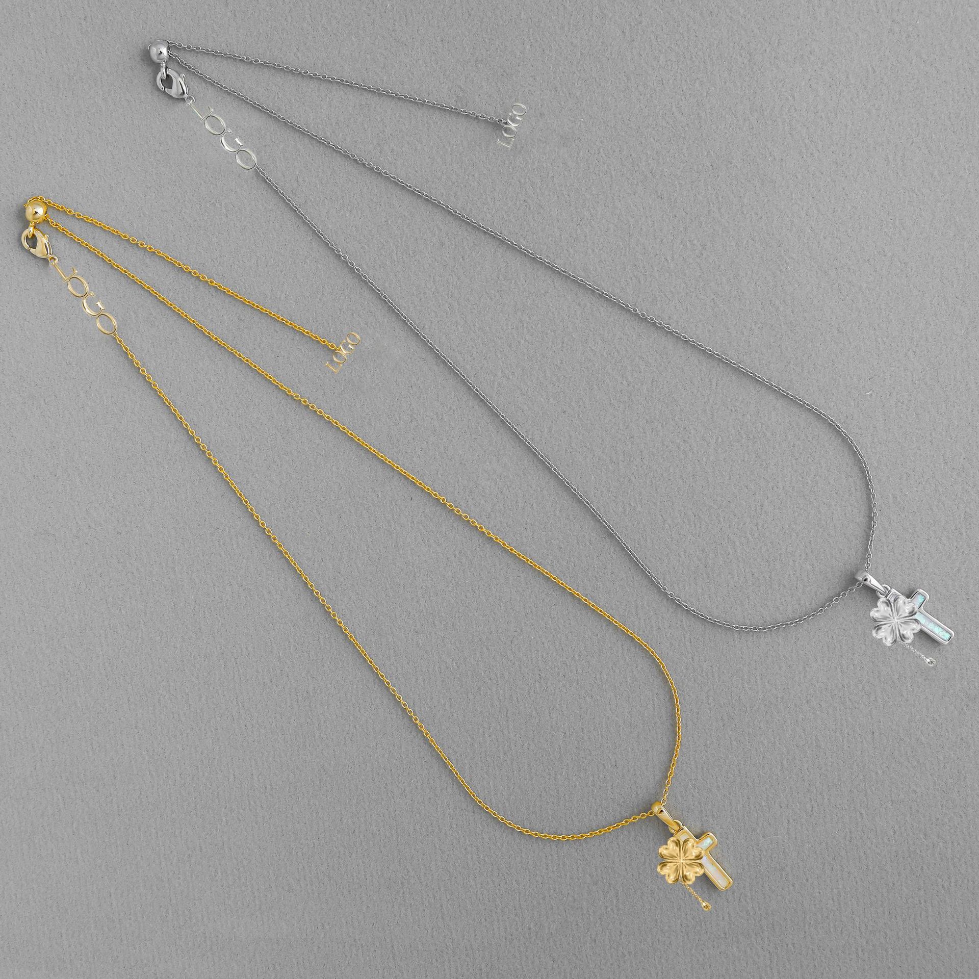 Ks White Kyocera Opal Cross Gold Necklace Cross-Border Popular Simple Elegant Exquisite Cross Clavicle Chain