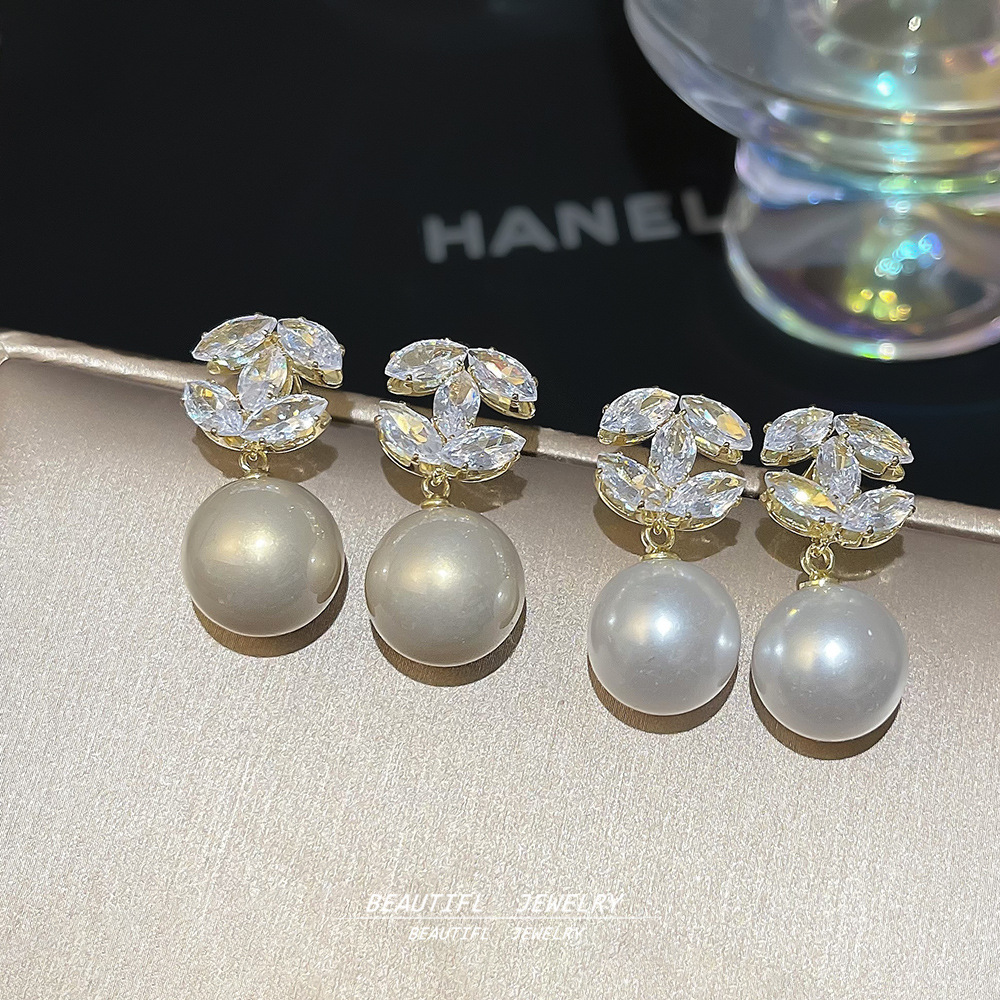 925 Silver Needle Small Fragrance Zircon Pearl Earrings Niche Accessible Luxury French Earrings High-End Fashion Exquisite Earrings