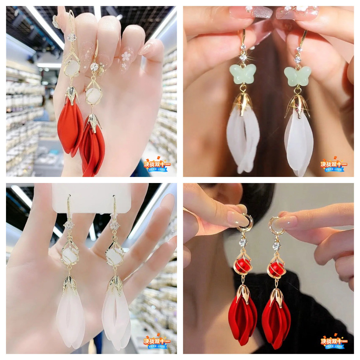 2024 White Petals Atmospheric Ear Hook Design Internet Popular All-match Earrings Earrings Fashion Long Water Drop Earrings for Women