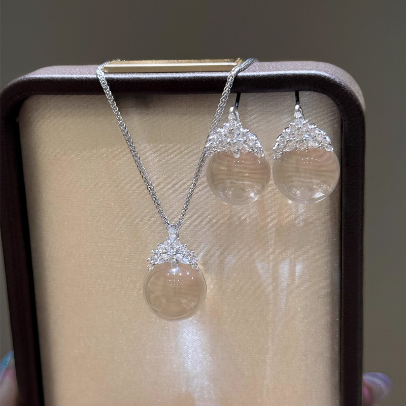 Ice and Snow Queen Crown White Crystal Pendant Necklace Accessories Women's Clavicle Chain Light Luxury Niche High-End Necklace Jewelry