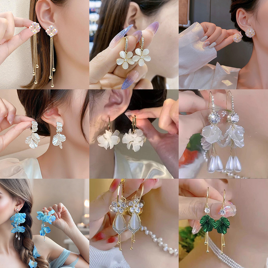 Long Four-leaf Grass Earrings South Korea High-end Temperament Super Fairy Internet Red Earrings Women's Silver Needle Earrings 2024 New