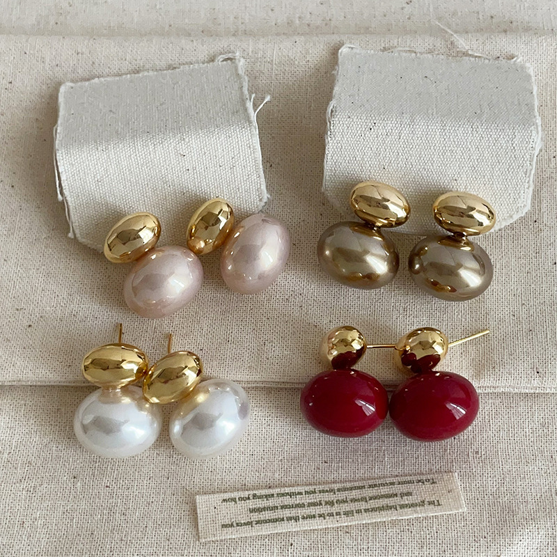 French-Style High-End Metal Bean Pearl Stud Earrings for Women, Simple and Unique Fashion Trendy Temperament Commuter Earrings