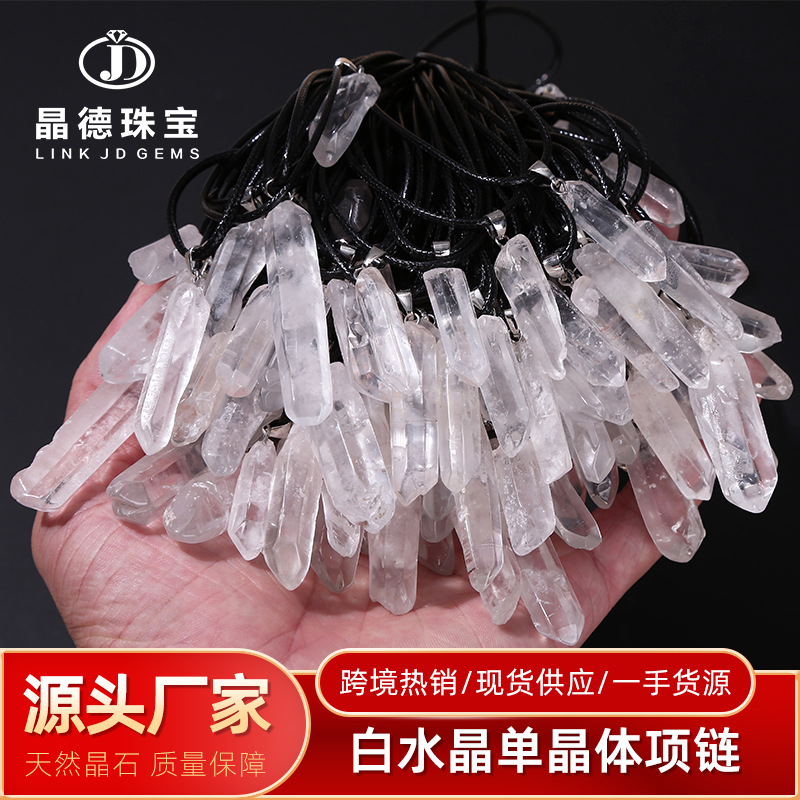 Jingde jewelry natural white crystal column single crystal hexagonal prism pendant necklace crystal stone diy jewelry wholesale